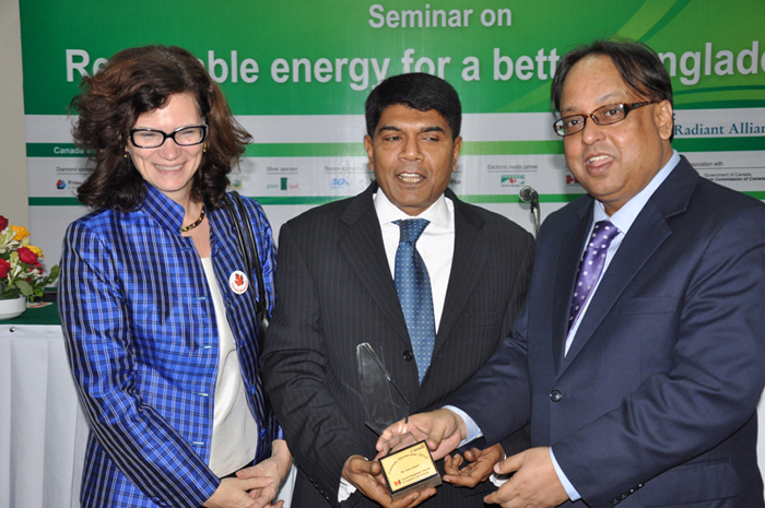 IDCOL received "The Green Company of Bangladesh" award under Canada Business Award 2012 by Canada Bangladesh Chamber of Commerce and Industry (CBCCI).