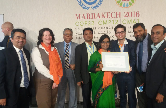 Infrastructure Development Company Ltd (IDCOL) along with ME SOLshare Ltd, Upokulio Biddutayan O Mohila Unnayan Samity (UBOMUS) and Centre for Energy Research at United International University and MicroEnergy International, was honoured with the Momentum for Change Award on 16th November 2016 in Marrakech, Morocco.