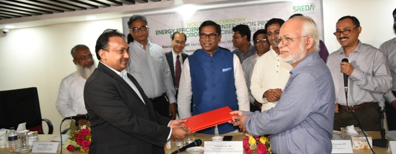 In this consequence we have approved two projects under EE&CPF, one is for Meghna Cement Mills Limited for an amount of BDT 1,270 million and the other one is Pretty Eco Apparel Village Limited for an amount of BDT 844 million. Today, on 24 May 2017 a No objection Certificate (NOC) issuing ceremony has arranged at SREDA. Mr. Nasrul Hamid MP, Hon’ble State Minister for Ministry of Power, Energy & Mineral Resources was present as Chief Guest, Mr. Nahim Razzaq MP, Convener, Bangladesh Climate Parliament & Dr. Ahmad Kaikaus, Secretary, Power Division, MPEMR have also presented as Special Guest. Mr. Md. Helal Uddin, Chairman, SREDA, ED & CEO of IDCOL, Director (Investment) & Head of Advisory, Representatives from Meghna Cement Mills Limited Pretty Eco Apparel Village Limited have also presented at the program.