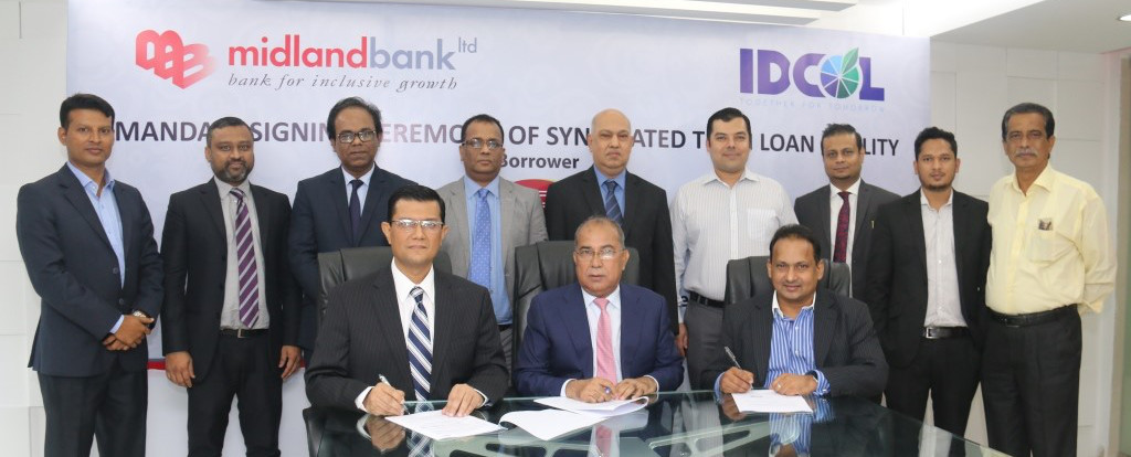 Midland Bank Limited (MDB) and Infrastructure Development Company Limited (IDCOL) jointly signed mandate for raising fund against syndicated term loan facility for an auto brick project namely Kushiyara Auto Bricks Limited (KABL).