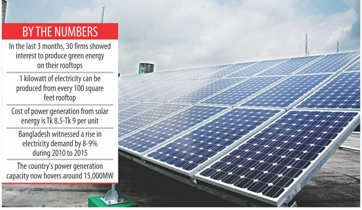 IDCOL to finance setting up solar panels on rooftops of various industries of Bangladesh. The average cost of power generation from solar energy is BDT 8-9 which is equivalent to the cost of electricity bought from the state-run utility service providers. 1 kilowatt of electricity can be produced from every 100 square feet of rooftop space. So, a factory that has 1 lakh square feet of space will be able to produce 1 megawatt of electricity. Solar energy will be cheaper if the possibility of future power tariff hike is taken into consideration. Industrial solar is getting much popularity among the local industrialist.