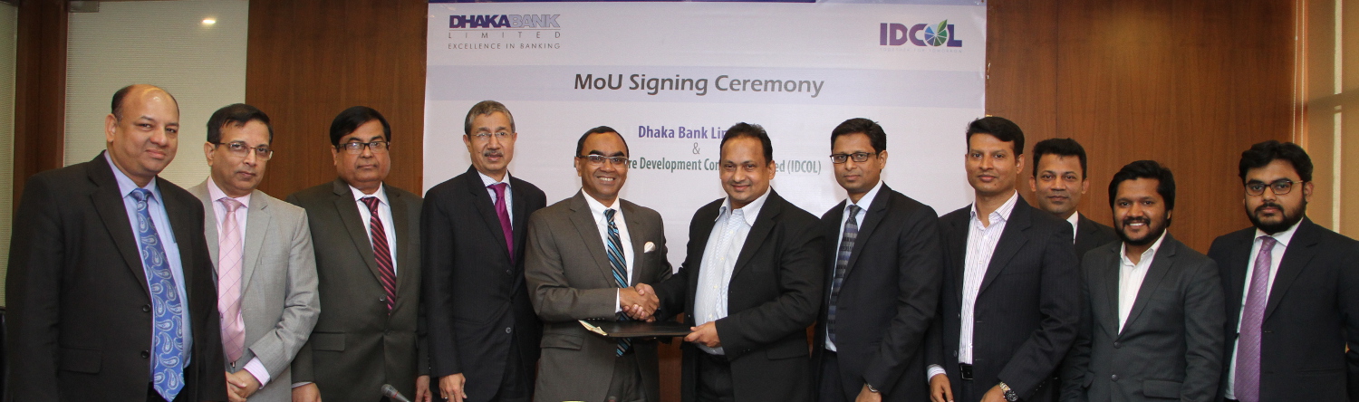 An MOU signing ceremony was held recently between Infrastructure Development Company Limited (IDCOL) and Dhaka Bank Ltd (DBL) at the Corporate Office of Dhaka Bank Ltd. Under this agreement Dhaka Bank will allow non funded credit facilities to the common clients against the letter of comfort issued by IDCOL. Syed Mahbubur Rahman, Managing Director & CEO of DBL and Mahmood Malik, Executive Director & CEO of IDCOL signed the agreement on behalf of respective organizations. Mr. Emranul Huq, AMD; Khan Shahadat Hossain, DMD; Md. Shakir Amin Chowdhury, DMD; Md. Abu Jafar, DMD; Mr. Mehedi Zaman Khan, VP & Manager DBL Kakrail Branch; Mohammad Ainul Haque, FVP, Corporate Banking Division, DBL; Mohammed Zahidul Haque, VP & Unit Head, SMI, IDCOL; Md. Mehedi Hasan, CFA, FRM, Assistant Manager, SMI, IDCOL with other officials of both the organizations were present on the occasion.