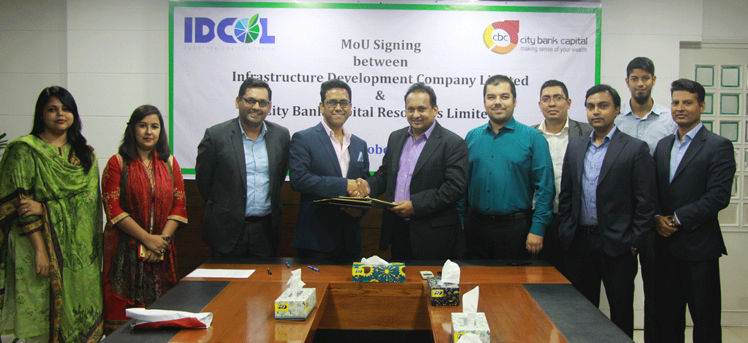 A Memorandum of Understanding (MoU) was signed between Infrastructure Development Company Limited (IDCOL) and City Bank Capital Resources Limited on 18 October 2017. The objective of the MoU is to develop long term partnership between IDCOL and CBCRL for mutual business development and offering of financial services by respective organizations. Mr. Mahmood Malik, Executive Director & CEO of IDCOL and Mr. Ershad Hossain, Managing Director & CEO, CBCRL signed the MoU on behalf of their respective organization.